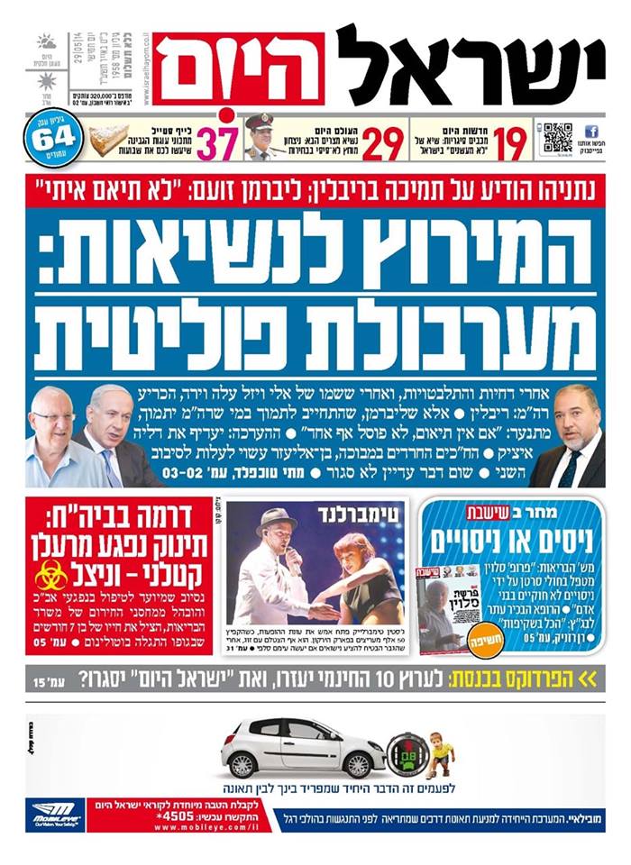 בישראל היום העדיפו את טימברלייק על ריקוד הדגלים של יום ירושלים. הטור מדיה פייטס מציין נכון שגם נפלו בסיפור הצעת הנישואים הפיקטיבית, כך שקשה לדעת איזו יד הם שכחו.