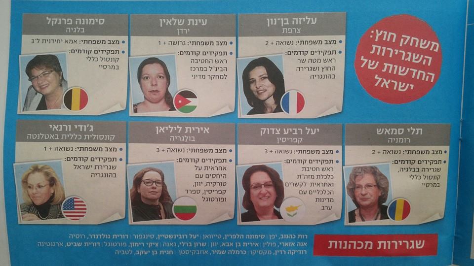עינת שלאין (אוולא שליין) תהיה שגרירת ישראל בירדן. השגרירה הראשונה במדינה ערבית. ואלו כל השגרירות החדשות (ידיעות):