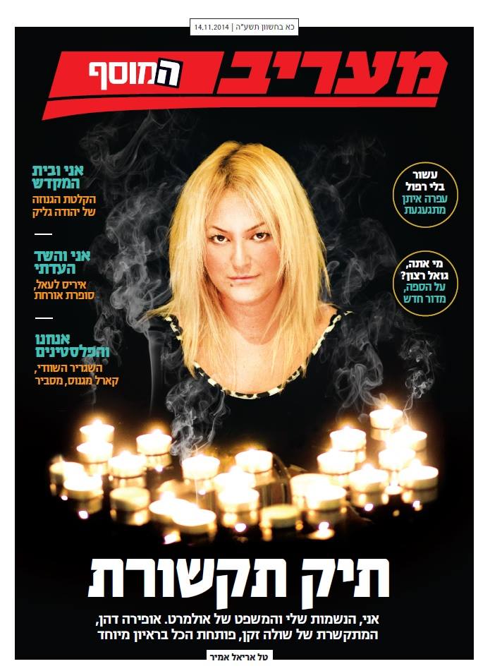 ב"מעריב סופהשבוע" קרני אלדד מספרת על דליה למקוס ז"ל, שנרצחה השבוע בפיגוע המתועב. שתיהן מאותו הישוב (תקוע) ולכן מרשה לעצמה קרני לכנות את ההרוגה בכינוי "דליה שלנו". בסוף הכתבה, לאחר ראיון עם המשפחה השכולה, מובא לפתע מתכון מפורט לעוגיות שוקולד ("דליה הייתה ידועה במאפים שלה, הנה מתכון שאהבה במיוחד"). הזוי, לא מכובד ולא לעניין. איפה העורך כשצריך אותו?