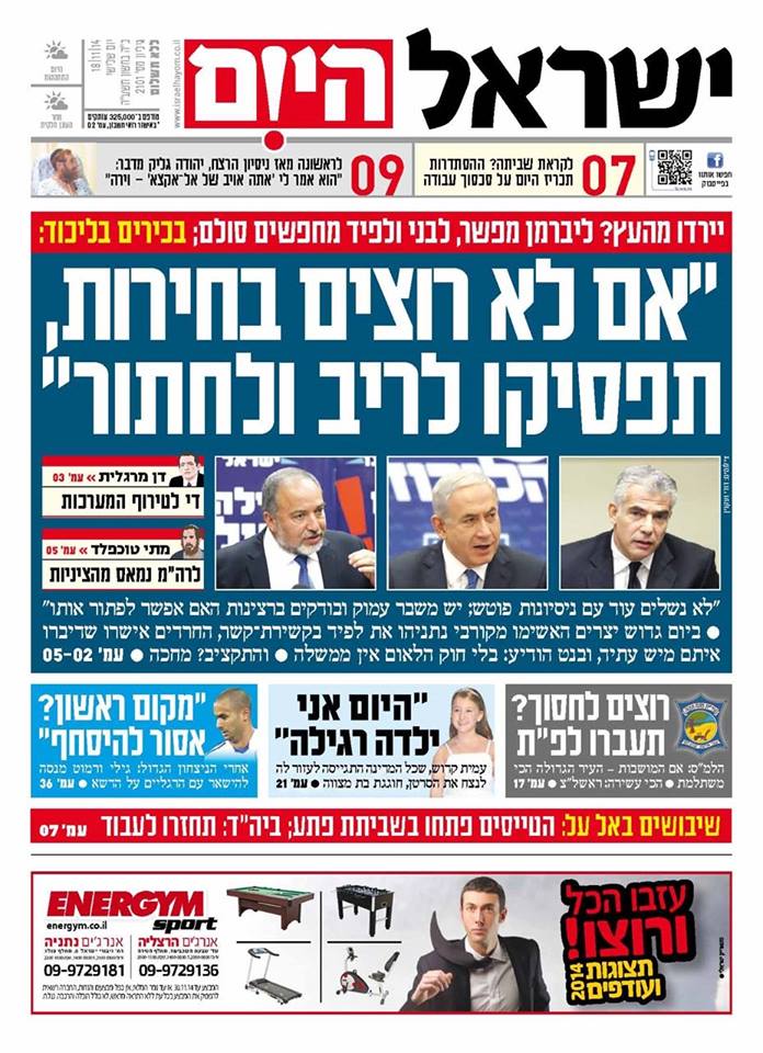 הידיעה המקבילה בישר"ה: "נתניהו נגד לבני".
