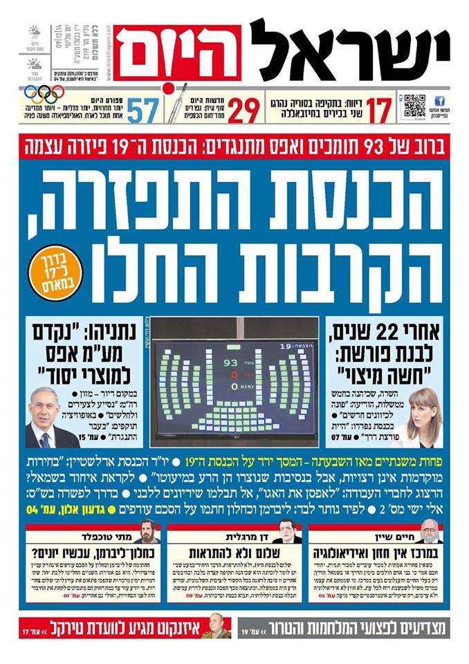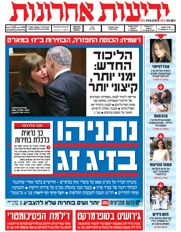 אני מבינה שהכותרת לפוסט מבטאת את התייחסותך לשער השערורייתי של ידיעות? "הליכוד החדש"… ותיקה אחת "ימנית קיצונית" אליבא דידיעות בימים כתיקונם, פורשת לפנסיה זה כבר "הליכוד החדש". ואז מאמר מערכת פמפלטי מוסווה לידיעה בכותרת ענק. בישראל היום לא מעזים להתקרב לרמה כזו של תועמלנות ילדותית וחסרת בושה. אבל המוני הפותים ימשיכו לחשוב שידיעות הוא עיתון ניטרלי.