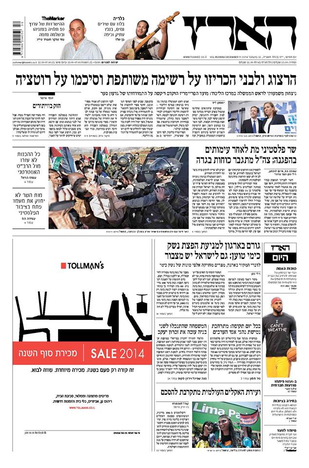 השער האחורי של ידיעות היום הוא שער העיתון הראשון (למעלה, בצילומי השערים).