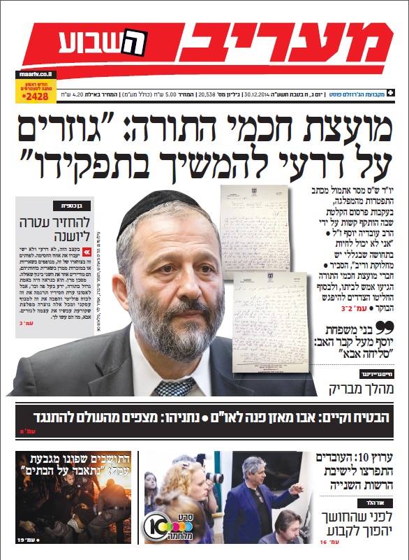 שימו לב לצילום של דרעי בשער ידיעות, בעיקר לזווית המעניינת (צילום: נועם ריבקין פנטון).