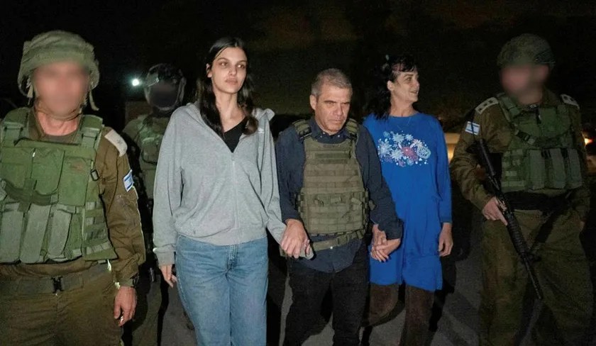 דוד מידן (בקישור סיכום ריאיון איתו בפוסט קודם), שהיה חלק ממו"מ שחרור של גלעד שליט, מייעץ בהתנדבות למשפחות החטופים בעוד גל הירש (41 א"ש בחודש + פנסיה צבאית של למעלה מ-35 א"ש שרירה וקיימת) מוביל את המאמצים לשחרורם. הזדמנות נאה להביא פה את הצילום שלו עם שתי החטופות הראשונות ששוחררו, שנותח והושמץ רבות ברשת, צילום שבו הוא נראה כילד מוזר עם שכפ"צ ביניהן הבלתי ממוגנות, אוחז בידיהן כשהנערה בת ה-18 מסרבת.