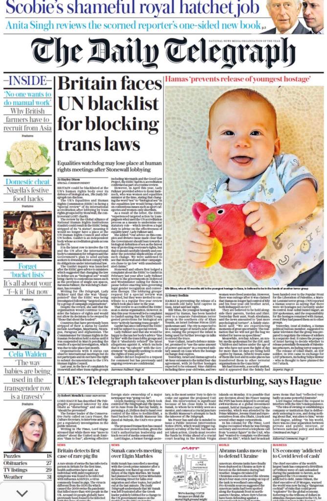 בהם גם תשעה ילדים ובני נוער, כולל התינוק כפיר ביבס (המככב בשער הדיילי טלגרף), בן עשרה חודשים ואחיו אריאל, בן 4.