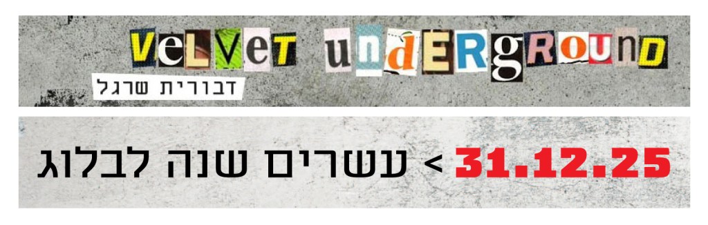 ועמוד Velvet Underground בפייסבוק, שהוא מעין עמוד זיכרון לבלוג, כי אני כותבת בו בכל פעם שאני לא מתאפקת, וכשאירועי השעה, כמעט ולא ביקורת תקשורת, מחרפנים אותי.